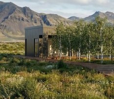 - Hinsvegar: 24m2 gestahús á tveimur hæðum.