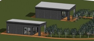 - B) 41m2: 2 svefnherbergi, eldhús og stofa í opnu rými og baðherbergi. Svefnloft yfir helmingi hússins.