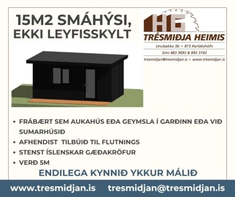 HÆGT AÐ FÁ 15m2 ÚTFÆRSLU SEM EKKI ÞARF BYGGINGARLEYFI FYRIR !